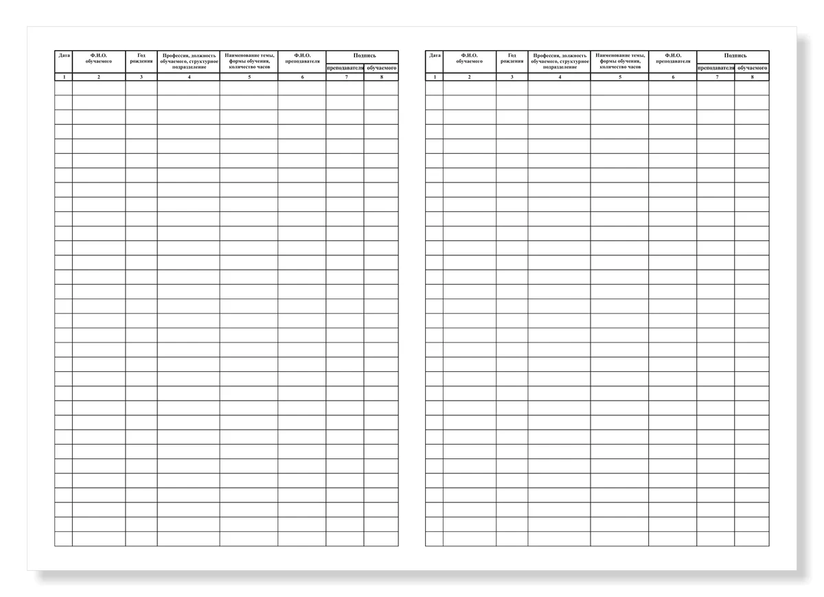 Журнал регистрации обучения по охране труда, А4, 50 листов