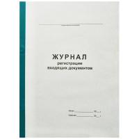Журнал для регистрации входящих документов. Обложка -картон плотностью 220 г/м2, бумвинильный корешок. Внутренний блок - офсетная бумага плотностью 50-55 г/м2. Вид крепления –скрепка.