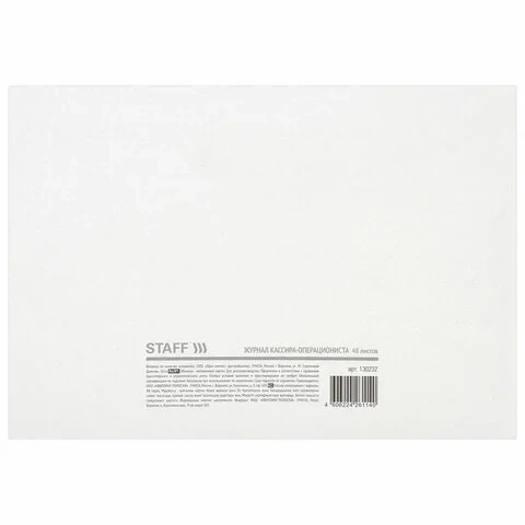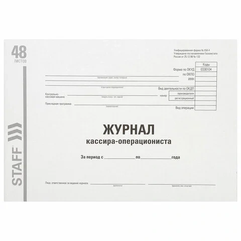 Журнал кассира-операциониста STAFF - один из основных помощников руководителей, способствующих развитию и улучшению качества производства или обслуживания. Спешите приобрести все необходимое для организации трудовой деятельности в нашем интернет-магазине!