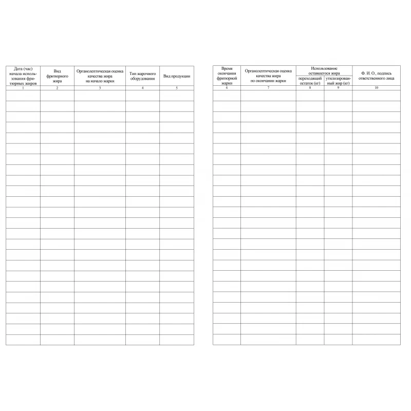 Журнал учета использования фритюрных жиров, 63 листа, бумага, КЖ 785
