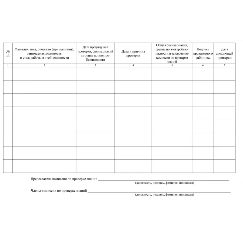 Журнал учета проверки знаний норм и правил работы в электроустановках соответствует Приложению 6 к Правилам по охране труда при эксплуатации электроустановок. Приказ Минтруда России от 15.12.2020 903н.