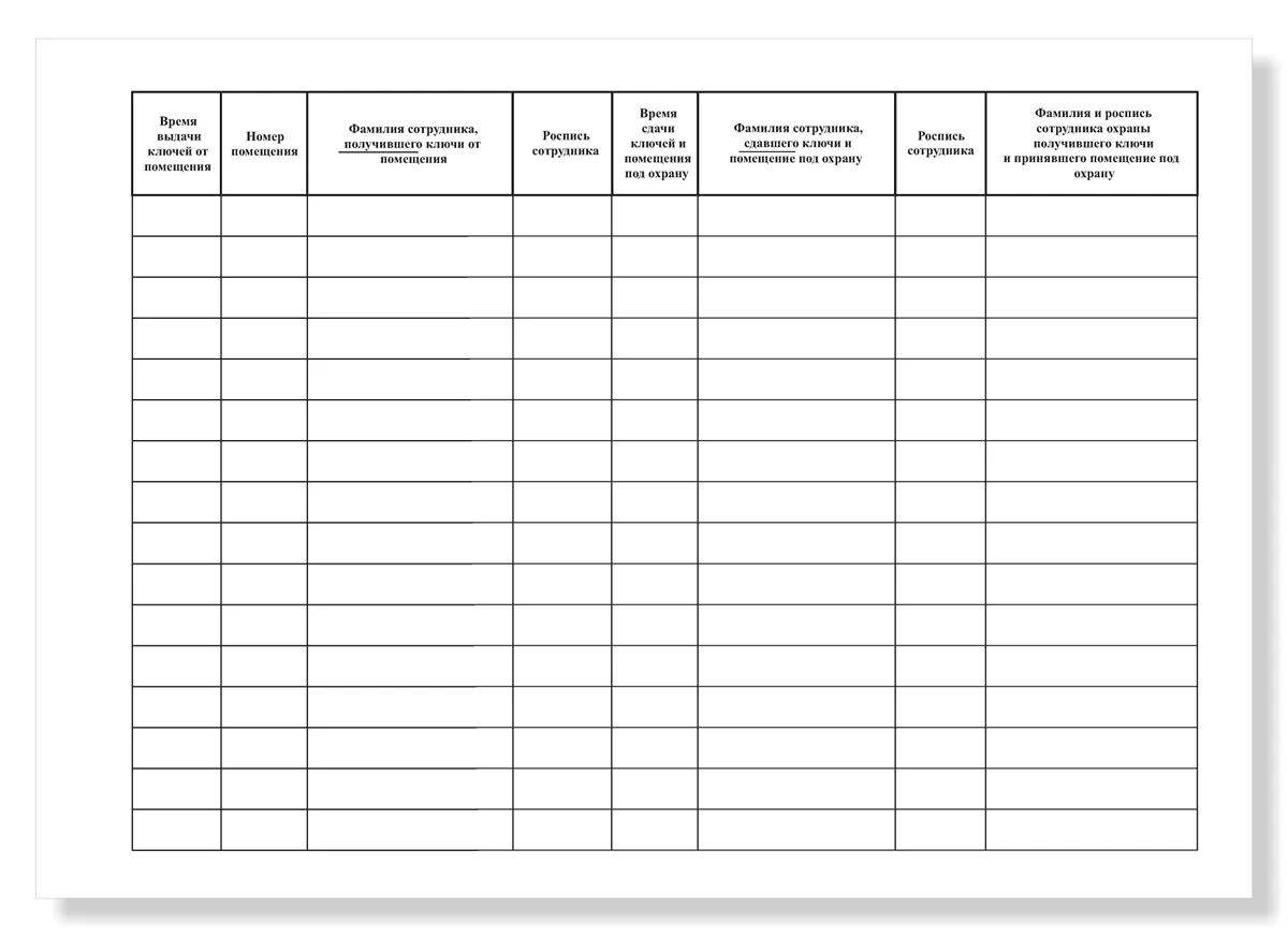 Журнал учета сдаваемых под охрану помещений, А4, 50 листов