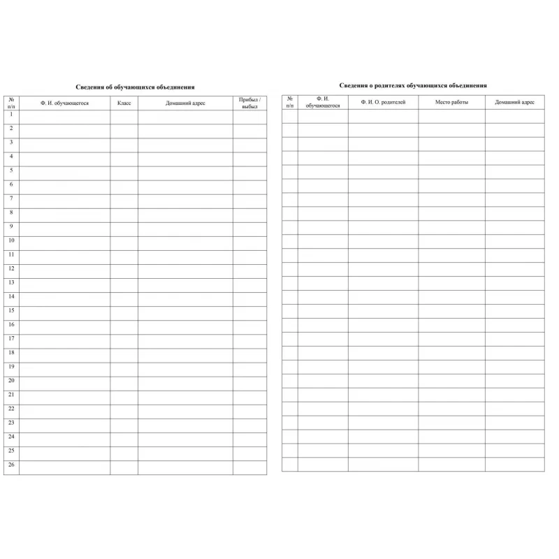По каждому направлению деятельности ведется список обучающихся, отмечаются даты, содержание занятий, количество часов, отведенных на тему.