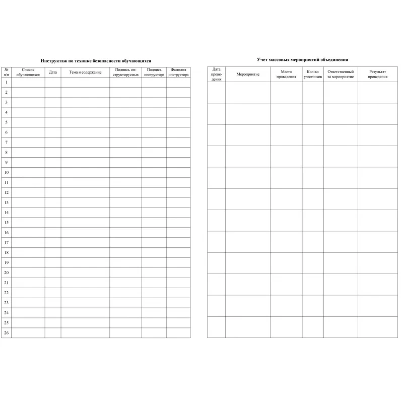 Отдельно заполняются сведения об обучающихся и их родителях, ведется учет посещения массовых мероприятий, заполняются инструктажи по ТБ.