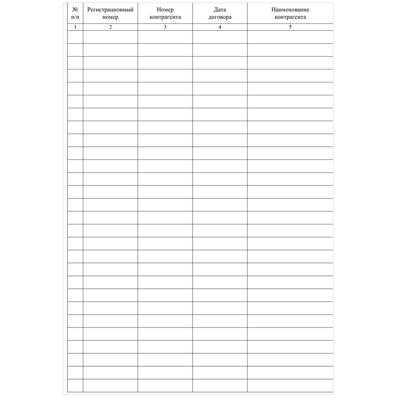 Журнал для регистрации договоров. Обложка - бумага офсетная плотностью 160 г/м2, припрессованная глянцевой пленкой. Внутренний блок - бумага писчая 60 г/м2. Вид крепления -скрепка.