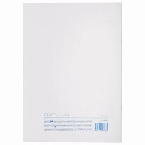 Мягкая обложка из мелованного картона плотностью 200 г/м2. Скрепление - скоба. Вертикальная ориентация. Внутренний блок содержит 48 листов офсетной бумаги плотностью 60 г/м2 с разлиновкой и текстом, облегчающими ведение записей. Формат А4 (200х290 мм).