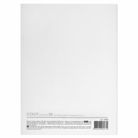 Журнал вахтенный крановщика, 48 л., картон, офсет, А4, 200х292 мм, STAFF, 130284
