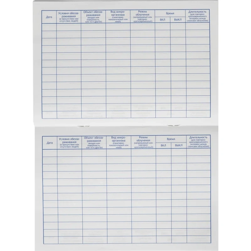 Журнал Винар для контроля и учета работы бактерицидных установок