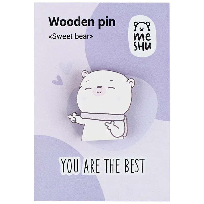 Значок из дерева MESHU Sweet bear – оригинальный и модный аксессуар, который преобразит любую вещь. Размер – 3,2*3,4 см, крепление – булавка, которое позволяет значку надёжно держаться.