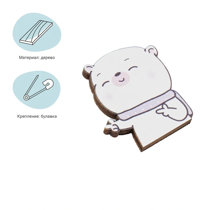 Значок деревянный MESHU 'Sweet bear', прямая УФ-печать, 3,2*3,4см