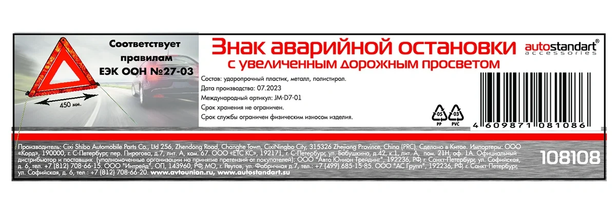 Знак аварийной остановки Autostandart PCT