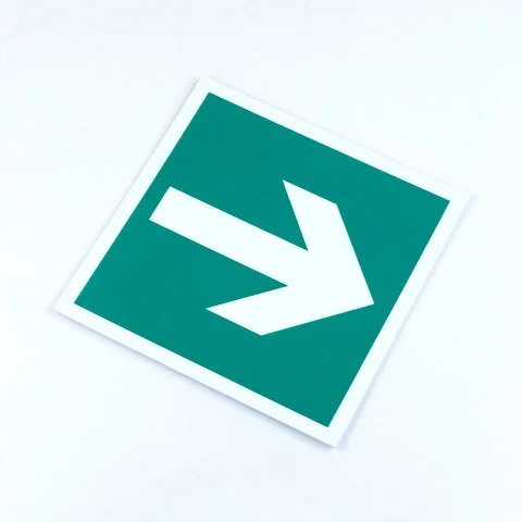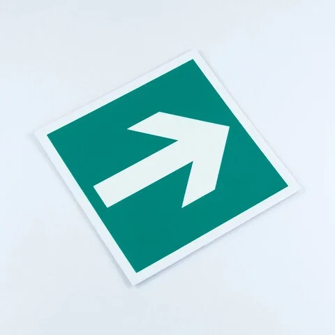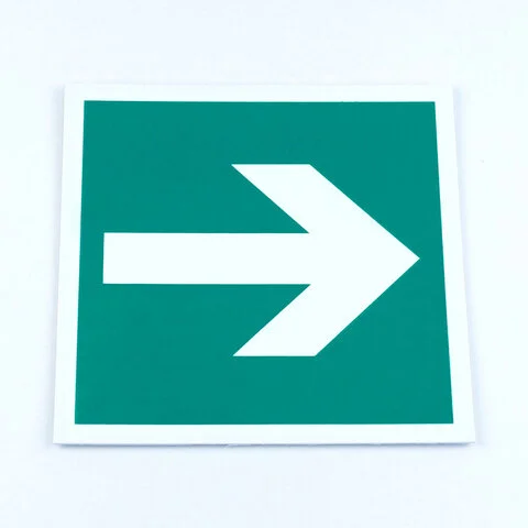 Эвакуационный знак 'Направляющая стрелка' используется только вместе с другими эвакуационными знаками. Применяется в качестве эвакуационной пиктограммы для световых указателей выхода. Изготавливается на белой самоклеящейся пленке.