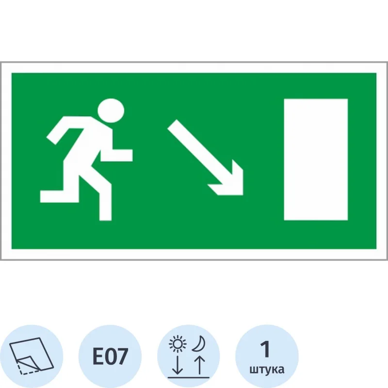 Знак Направление к эвакуационному выходу направо вниз Гасзнак 250х250мм, самоклеящаяся пленка ПВХ