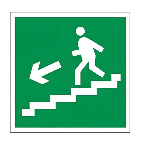 Знак эвакуационный 'Направление к эвакуационному Выходу по лестнице налево вниз' изготовлен в соответствии ГОСТ, отраслевыми нормами, правилами и инструкциями. Квадрат.