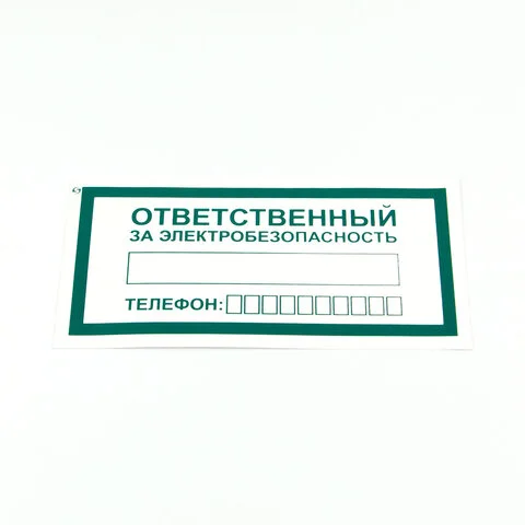 Знак служит для указания ответственного за электробезопасность в помещении и его контактного телефона. Устанавливают непосредственно в помещении, размещается на дверях помещений, в которых размещено потенциально опасное электрическое оборудование.