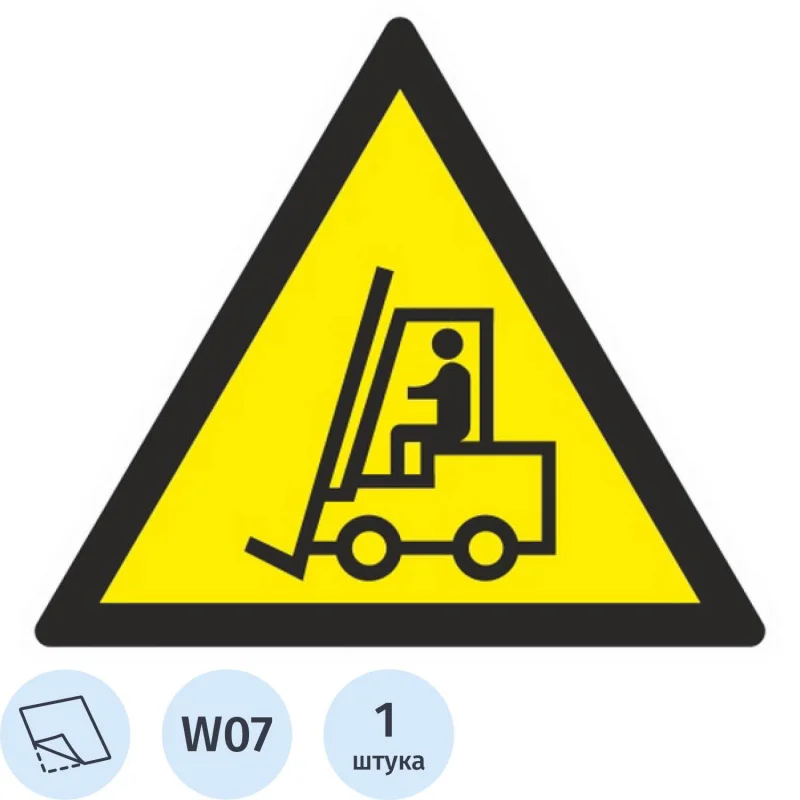 Знак безопасности Внимание автопогрузчик W07 200×200 мм. Предназначенный для размещения на участках ведения погрузочно-разгрузочных работ. Знак с черным изображением на желтом фоне выполнен из ПВХ-пленки. Знак изготовлен на белой квадратной основе. Хорошо держится на любом материале благодаря клеевому слою. Используемые материалы: самоклеящаяся пленка ПВХ. Обязательно ознакомьтесь с памяткой на фотографиях, чтобы верно подобрать знак, исходя из типа поверхности и условий использования. Перед наклеиванием поверхность необходимо очистить, обезжирить и вытереть насухо. Стандарты: ГОСТ 12.4.026-2015.