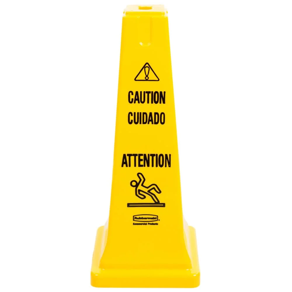 Знак Внимание. Мокрый пол Rubbermaid конусообразный, на нескольких языках, FG627700YEL