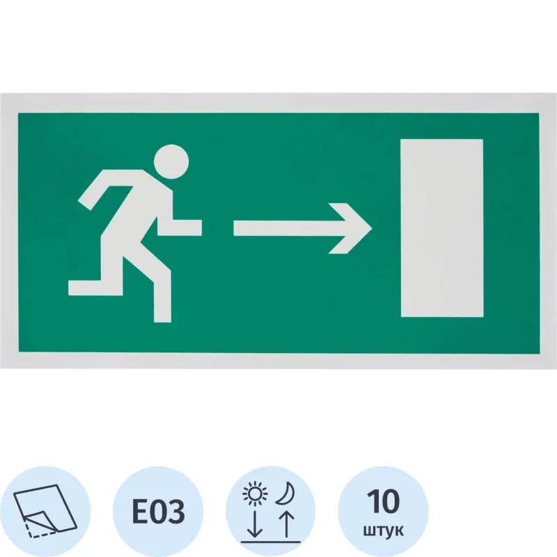 Знак Направление к эвакуационному выходу направо Гасзнак 300х150мм, пластик