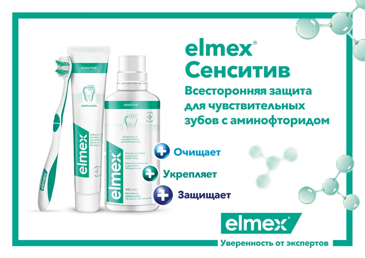 Зубная паста elmex Сенситив Плюс защищает от повышенной чувствительности зубов и кариеса дентина, содержит высокоэффективный активный ингредиент органического происхождения — аминофторид, который способствует реминерализации зубной эмали. Снижает повышенную чувствительность зубов за счет обтурации открытых дентинных канальцев глобулами фторида кальция. Обеспечивает бережный уход за чувствительными зубами благодаря низкому уровню абразивности и минимальному истиранию твердых тканей зуба.