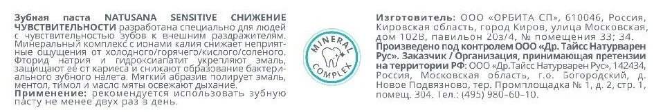 Зубная паста Natusana Sensitive снижение чувствительности разработана специально для людей с чувствительностью зубов к внешним раздражителям.