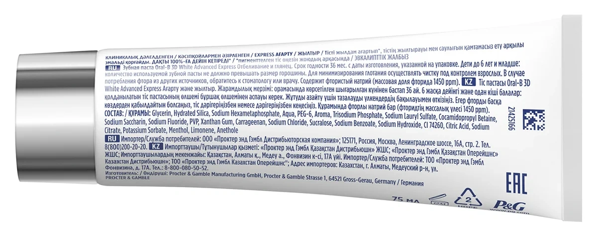 Отзывы о «Зубная паста Oral-B 3D White Advanced Express отбеливание, 75мл»