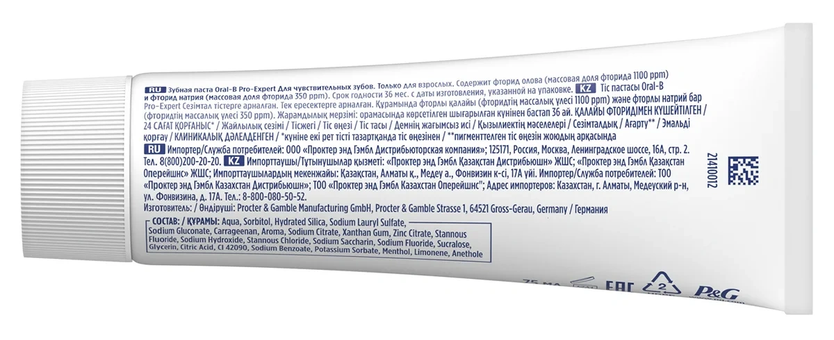 Зубная паста Oral-B Pro-Expert для чувствительных зубов обеспечивает 24-часовую защиту при использовании два раза в день. Клинически доказано.