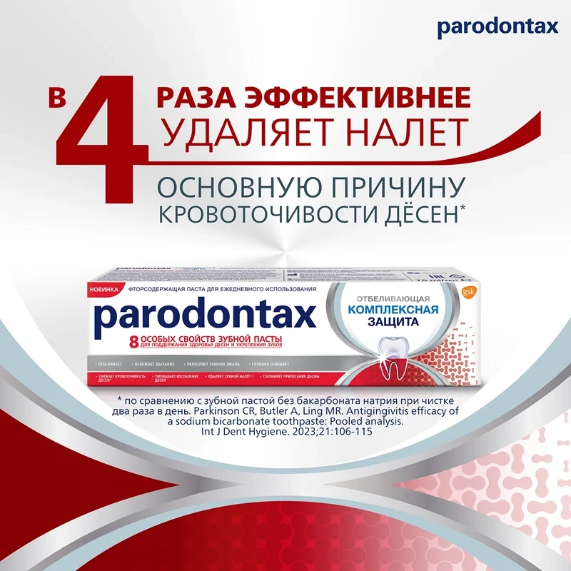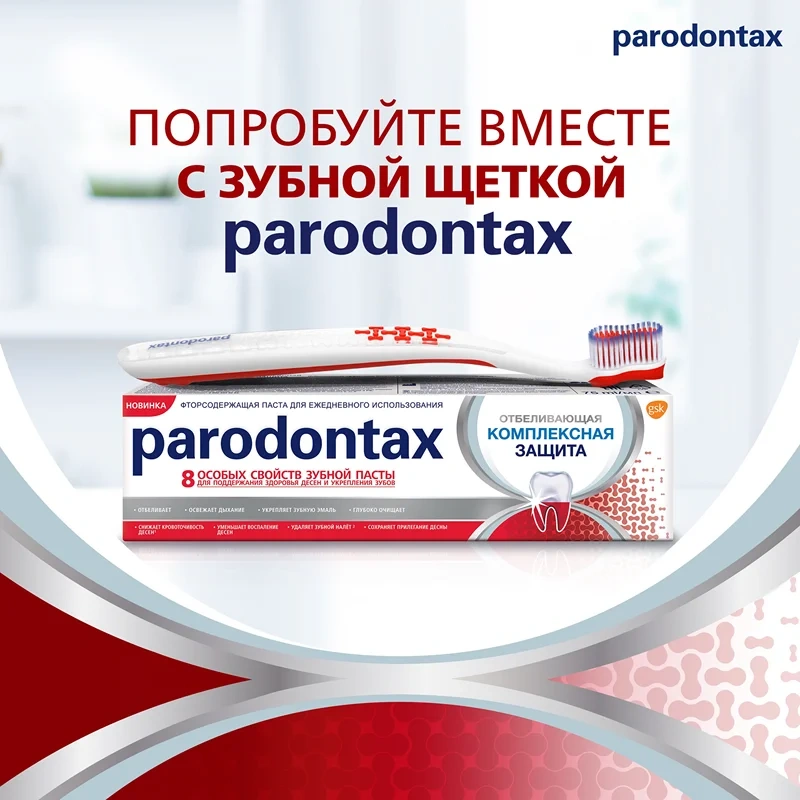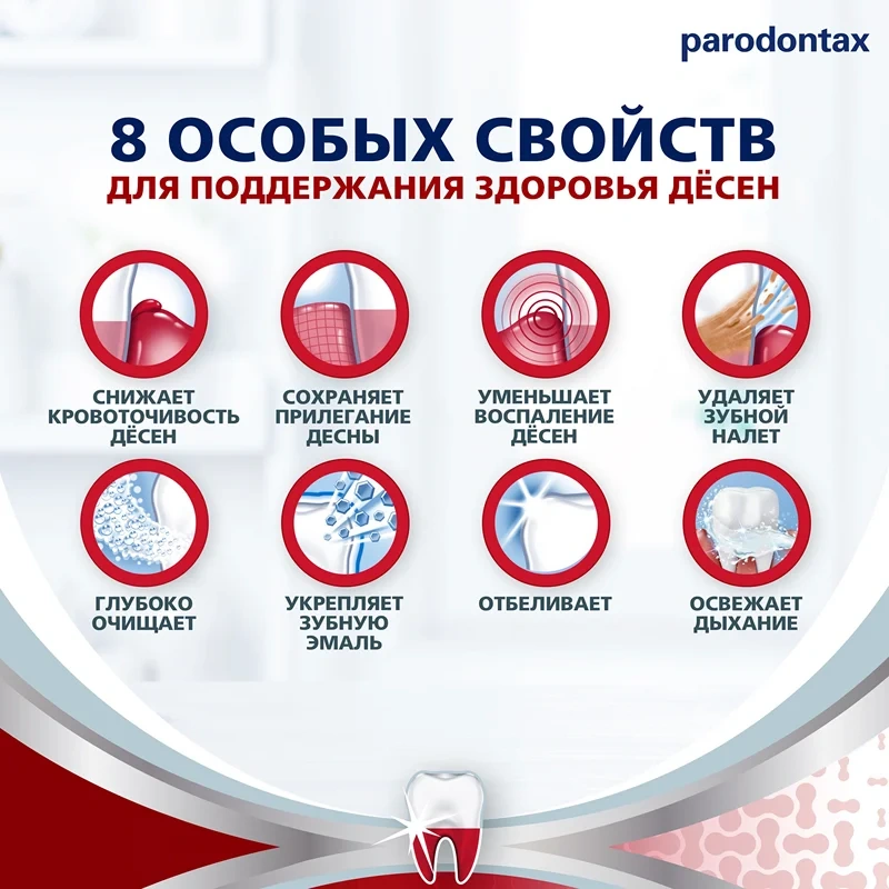 Parodontax - бренд No1 по рекомендации1 стоматологов при кровоточивости десен. Зубная паста Parodontax Комплексная Защита обладает 8 особыми свойствами для поддержания здоровья десен и укрепления зубов.