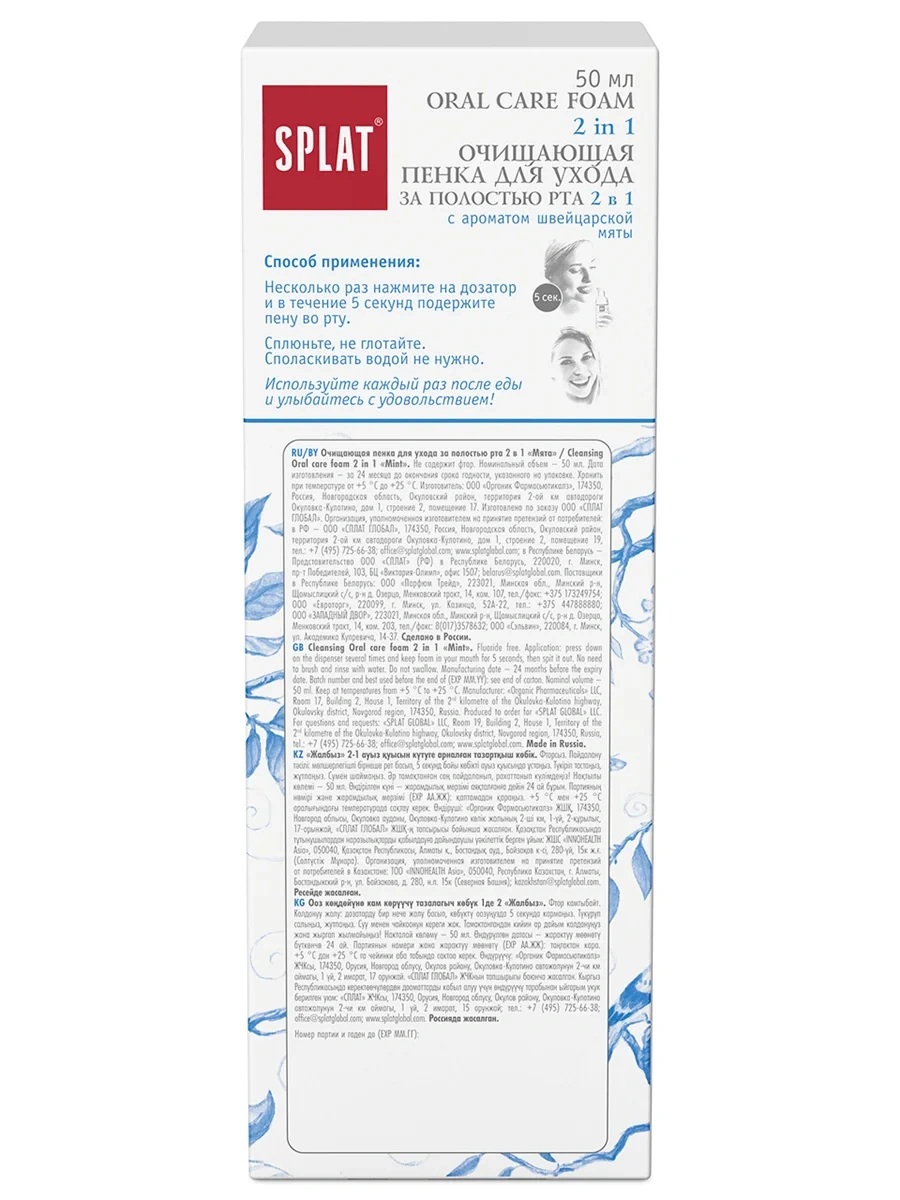 Вода, глицерин, кремниевая кислота, кокосульфат цинка, карбоксиметилцеллюлоза, CI 77891, монофторофосфат натрия, натрий сахарин, карбонат натрия, тетронатрий пирофосфат, фторид натрия, эвгенол, лимонен, гераниол, линалоол.
