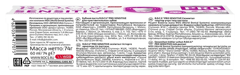 Зубная паста R.O.C.S. Pro Sensitive для чувствительных зубов, 74г