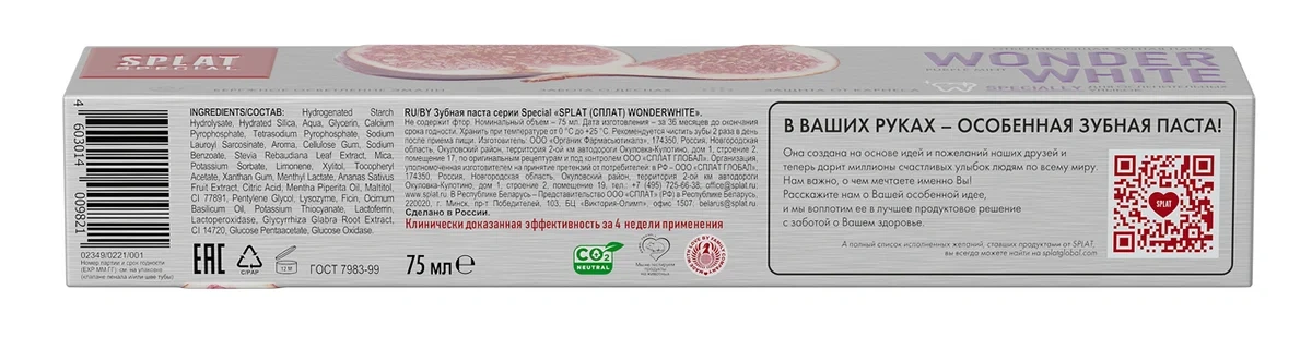 Зубная паста Splat Special Wonderwhite отбеливающая, 75мл