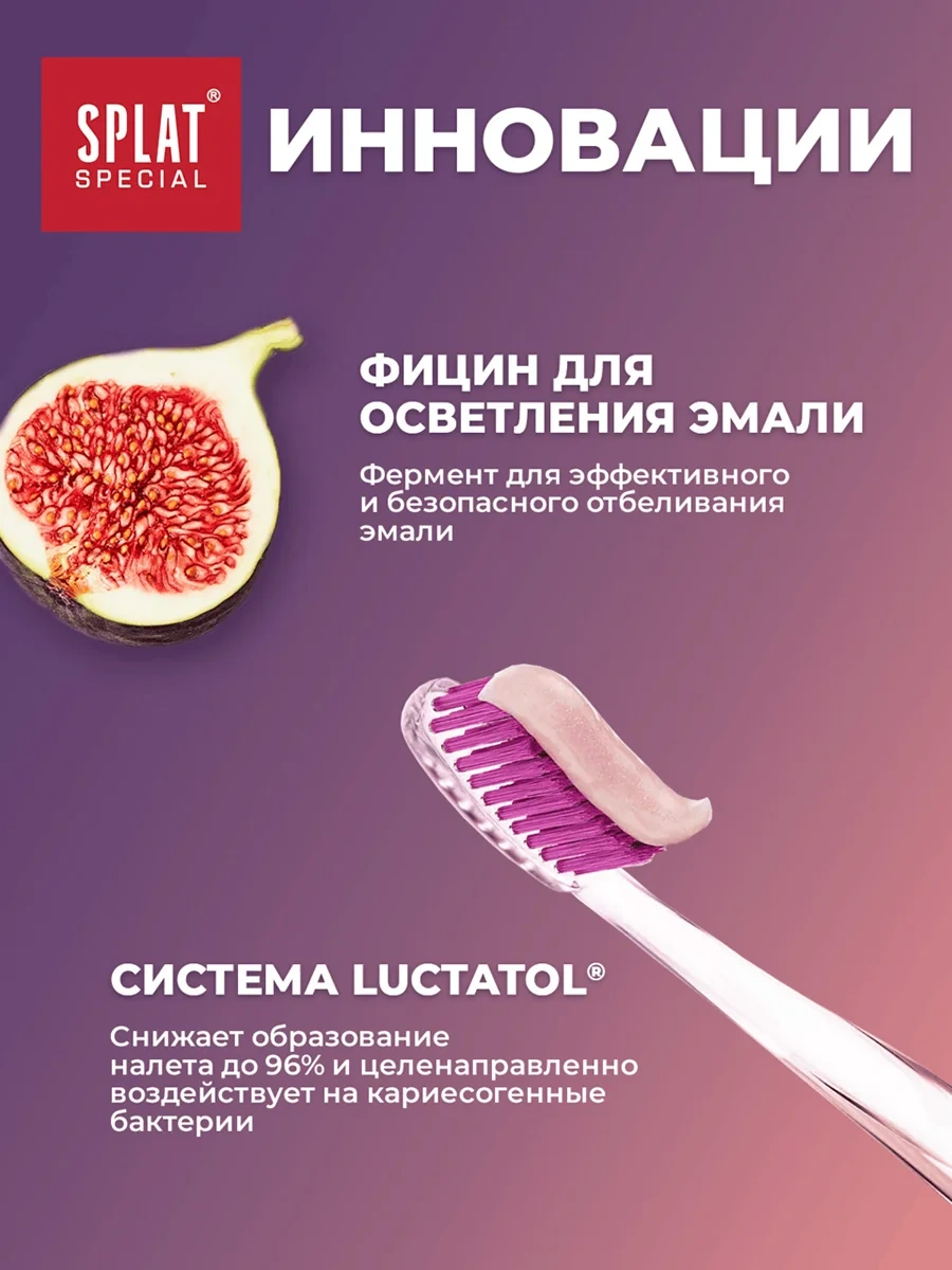 Разработана специально для ежедневного отбеливания и комплексного ухода за полостью рта, защищает от кариеса и заботится о деснах. Природный фермент фицин, содержащийся в плодах инжира, в синергии с бромелайном из плодов ананаса безопасно отбеливает эмаль. Отличное средство для ослепительной улыбки и комплексного ухода за полостью рта. Уникальный комплекс на основе экстракта ананаса и фермента фицина, полученного из плодов инжира, бережно отбеливает эмаль, не повреждая ее. Инновационная система Luctatol сокращает риск возникновения кариеса и уничтожает патогенные бактерии, а противовоспалительные компоненты помогают поддерживать здоровье десен. Формула абсолютно безопасна, ведь в ее составе нет SLES, парабенов, триклозана, хлоргексидина, фтора. Упаковка отличается стильным дизайном. Эффективность клинически доказана.