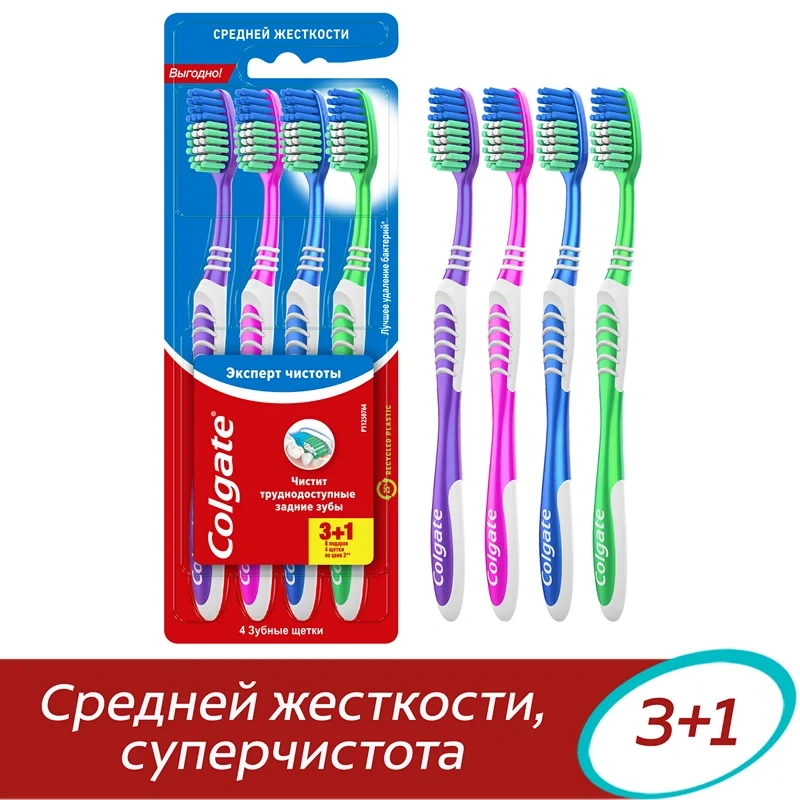Зубная щетка Colgate Эксперт чистоты многофункциональная, средней жесткости, промоупаковка 3+1