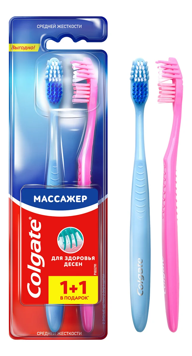 Зубная щетка Colgate Массажер средняя 1+1шт