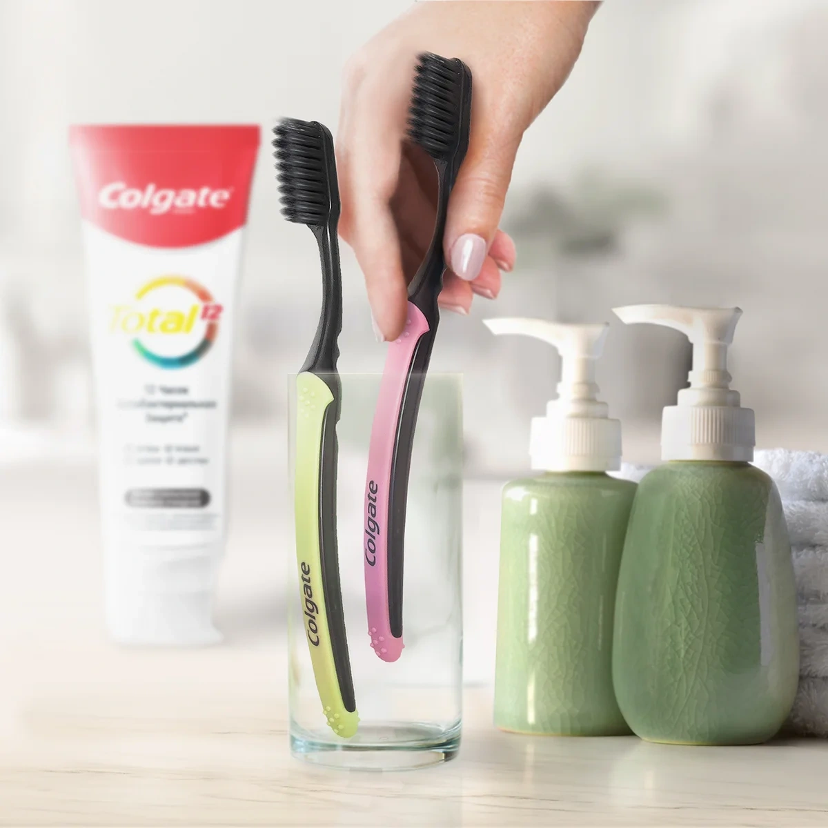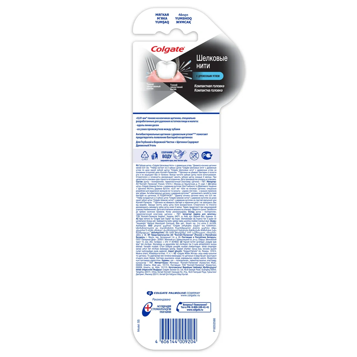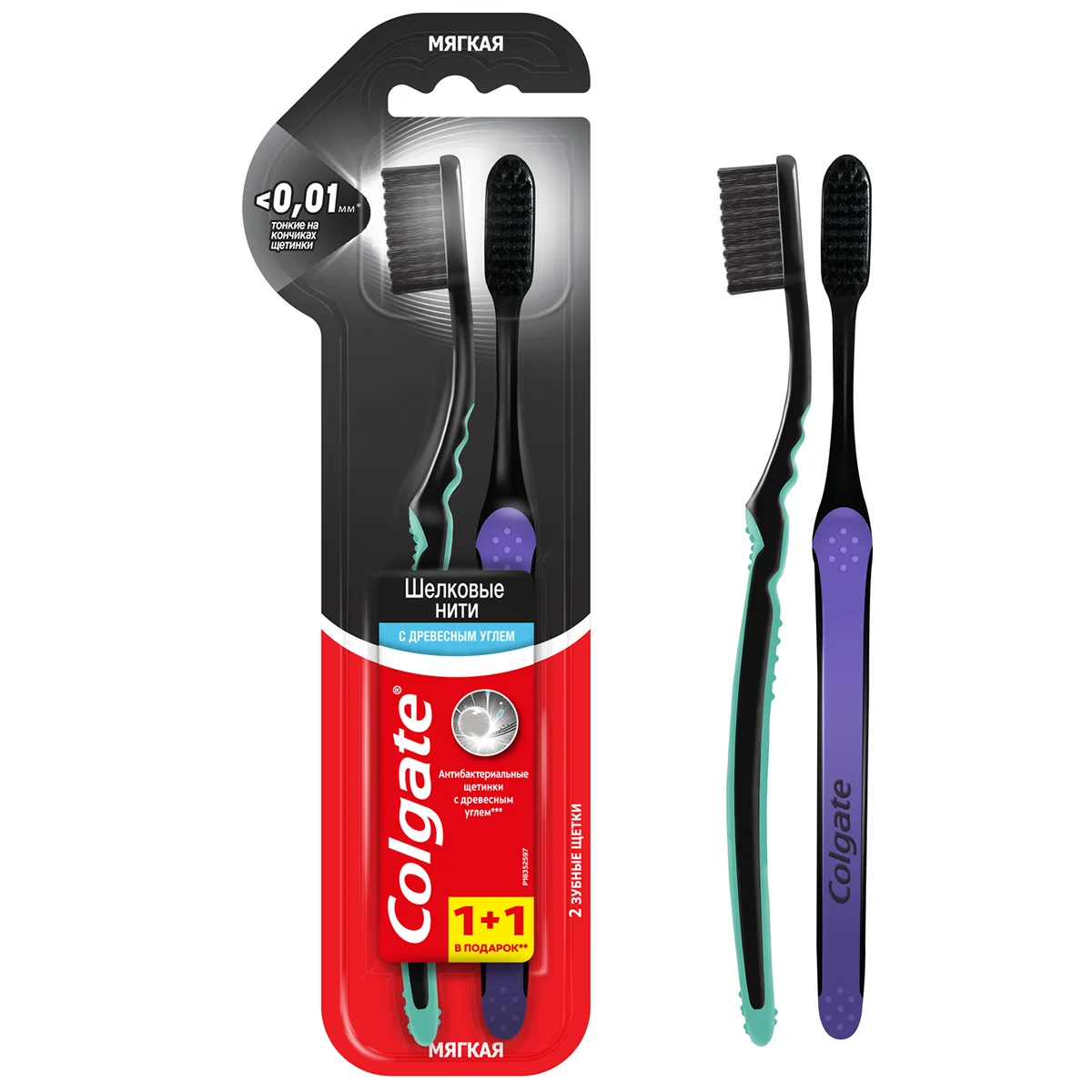 Зубная щетка Colgate Шелковые Нити с древесным углем для здоровья десен, мягкая, черная, промоупаков