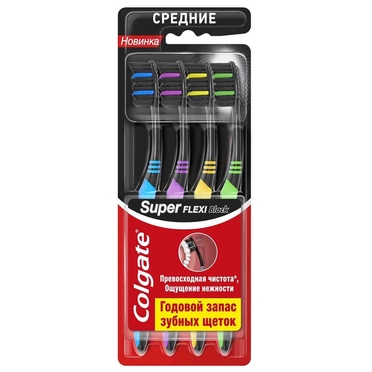 Зубная щетка Colgate Super Flexi Black средняя, 4шт