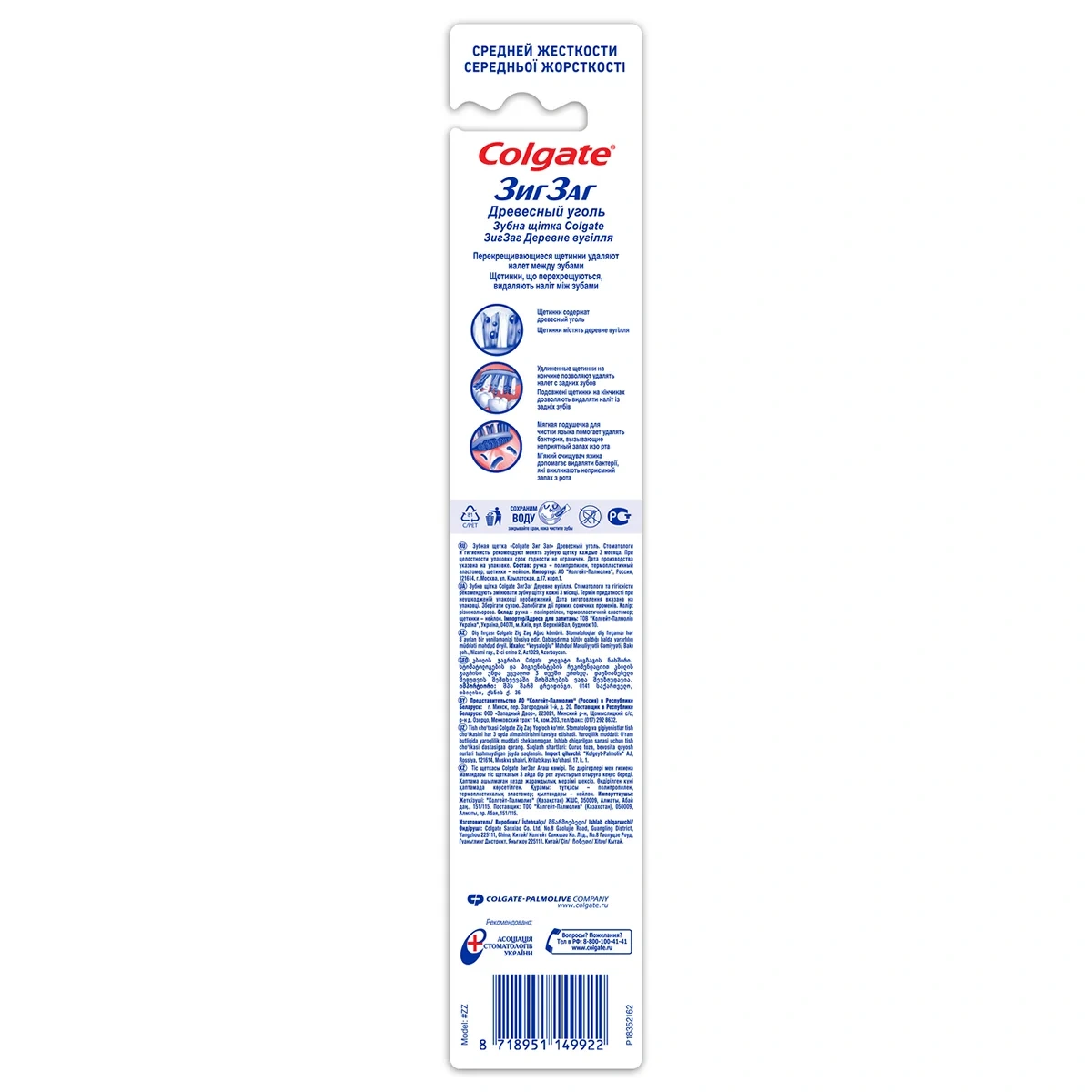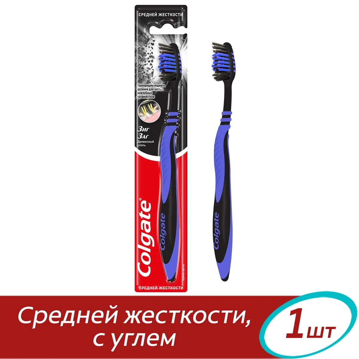 Уникальной особенностью зубной щетки Colgate Зиг Заг Древесный уголь являются перекрещивающиеся щетинки, предназначенные для глубокой и эффективной чистки межзубных промежутков, а также щетинки, содержащие древесный уголь. Мягкая подушечка для чистки языка помогает удалять бактерии, вызывающие неприятный запах изо рта. Гибкое основание головки зубной щетки обеспечивает дополнительный комфорт во время чистки, а также способствует мягкому воздействию на десны.
