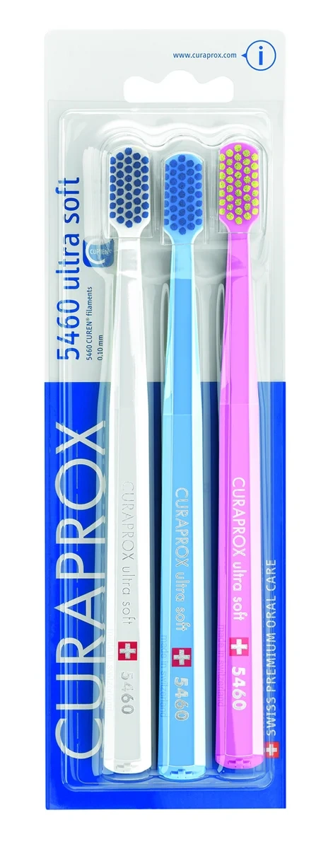 Зубная щетка Curaprox Ultrasoft 5460, 3шт cамая мягкая и густая из всех щеток Curaprox, с большим количеством щетинок. 5460 щетинок Curen выполнены из сверхтонкого полиэстрового волокна толщиной 0,10мм, что обеспечивает максимально комфортное и атравматичное удаление зубного налёта. Густая щетина идеально полирует эмаль. Компактная головка щетки позволяет тщательно очистить всю поверхность зуба. Щетка идеально подойдет всем, а также людям с повышенной чувствительностью эмали и кровоточивостью десен. Ваши зубы и десна полюбят это невероятно мягкую и эффективную щетку.