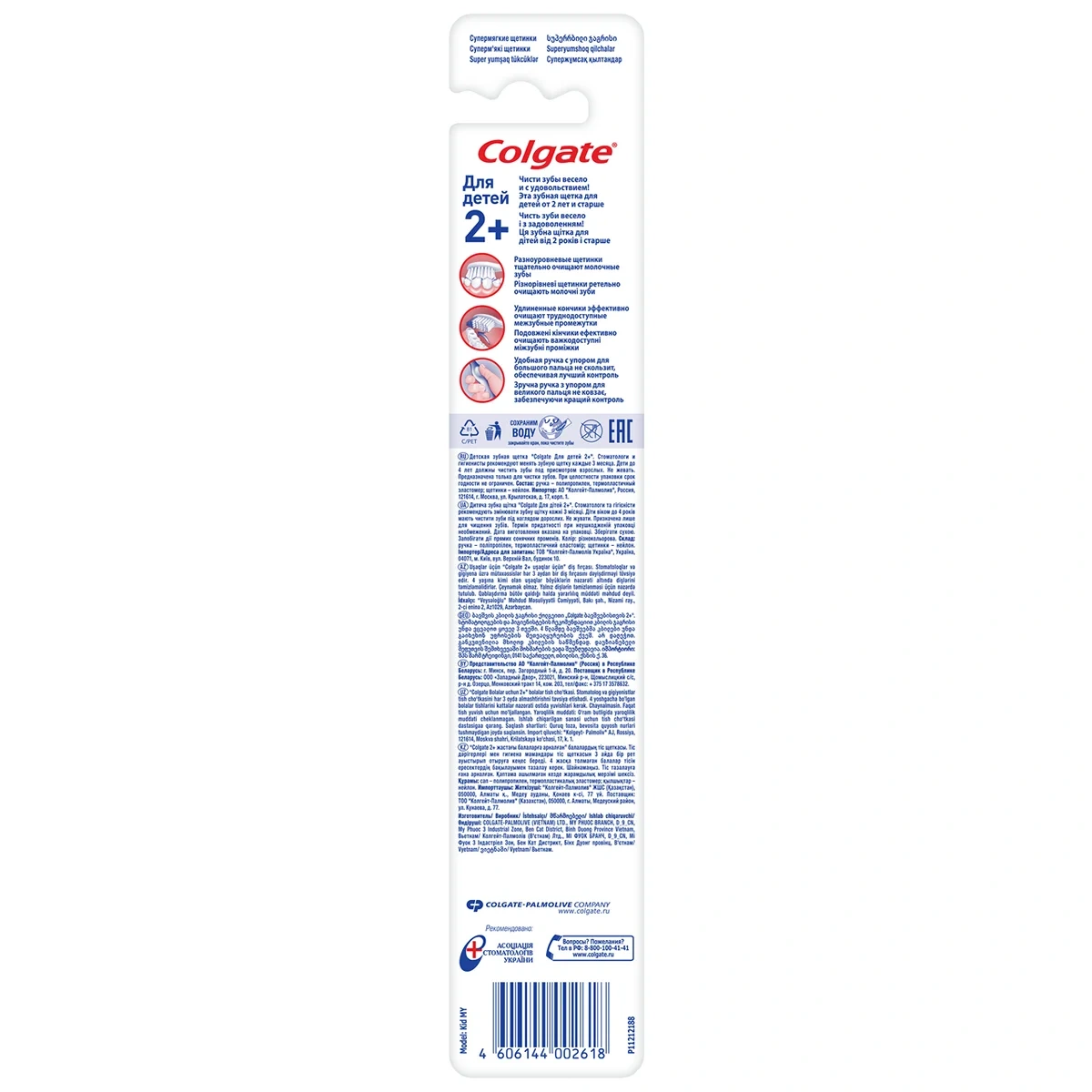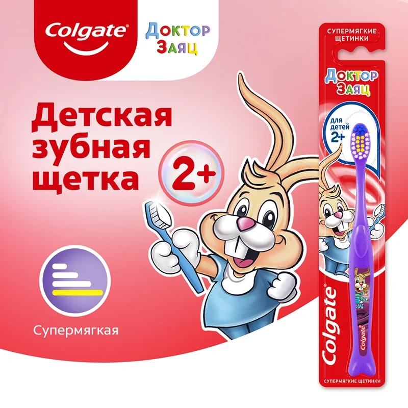 Детская зубная щетка Colgate Доктор Заяц 2+ — это веселый способ привить ребенку от 2 лет и старше хорошие привычки по уходу за полостью рта с самого раннего возраста! Веселый способ привить хорошие привычки по уходу за полостью рта с самого раннего возраста. Очень мягкие щетинки для эффективной и бережной чистки. Щетинки разной высоты очищают большие и маленькие зубы. Упор для большого пальца для удобного управления. Маленькая головка для легкого доступа к дальним зубкам. Подходит как для девочек, так и для мальчиков.