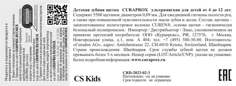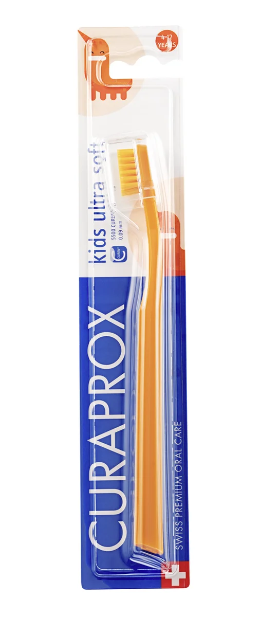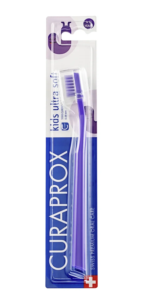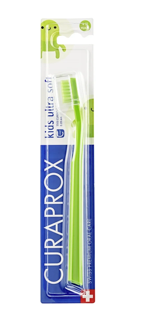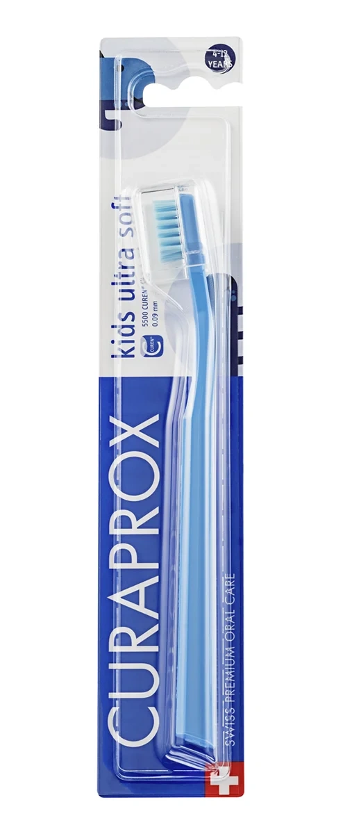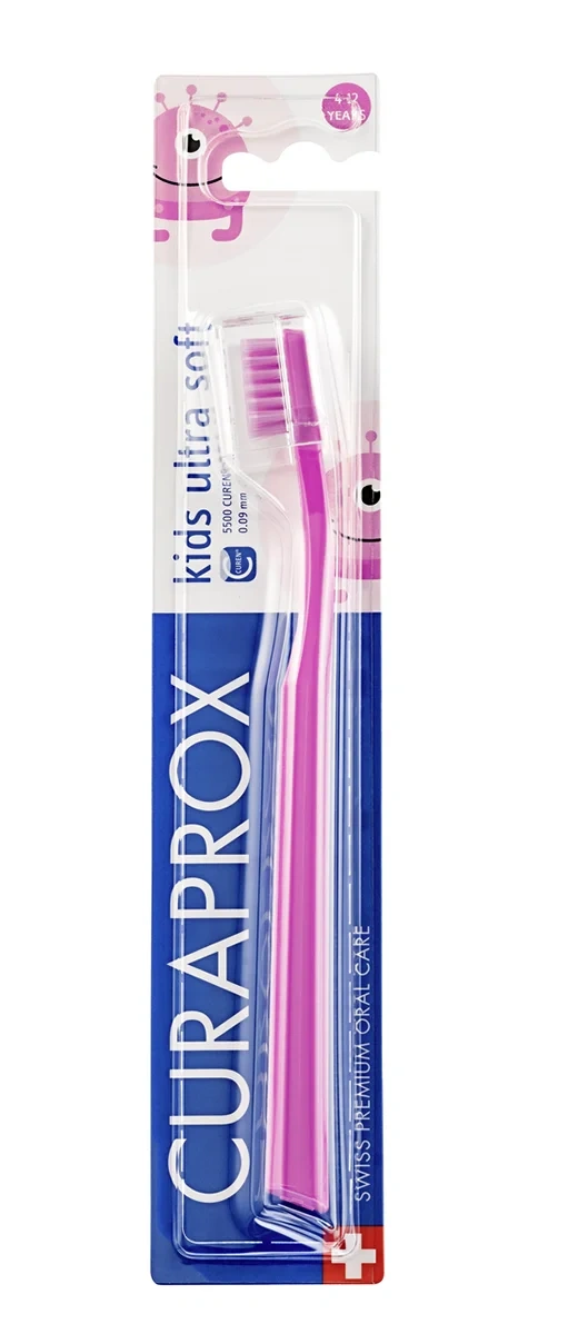 Детская зубная щетка Curaprox Kids ультрамягкая, для детей от 4 до 12 лет. Содержит 5500 щетинок d 0,09 мм, деликатна к десне и эмали зубов. Для ежедневной гигиены полости рта, а также при повышенной чувствительности эмали зубов и десен. Щетка эффективно, но при этом деликатно очищает поверхность эмали, а также легко проникает в труднодоступные места, в том числе в зону десневой борозды, где скапливается большое количество бактериального налета. Ее маленькая головка имеет легкий наклон, что позволяет избежать травмирования зубов и десен. Восьмигранная ручка, выполненная из гигиенически безопасного полипропилена, хорошо лежит в детской ладошке, обеспечивая правильный угол чистки.