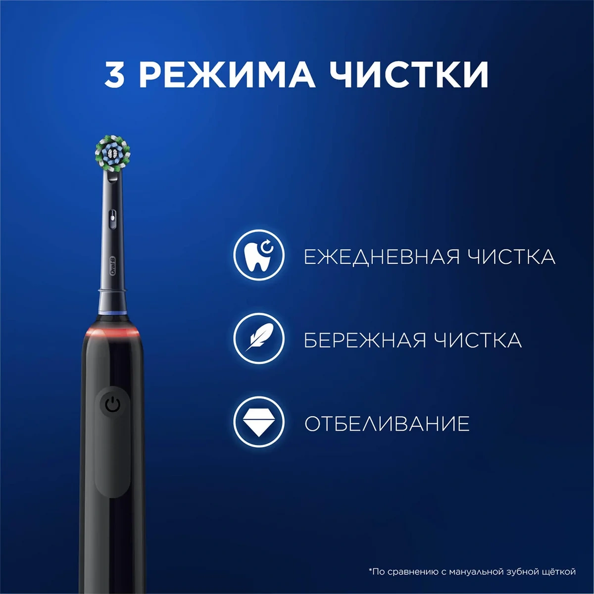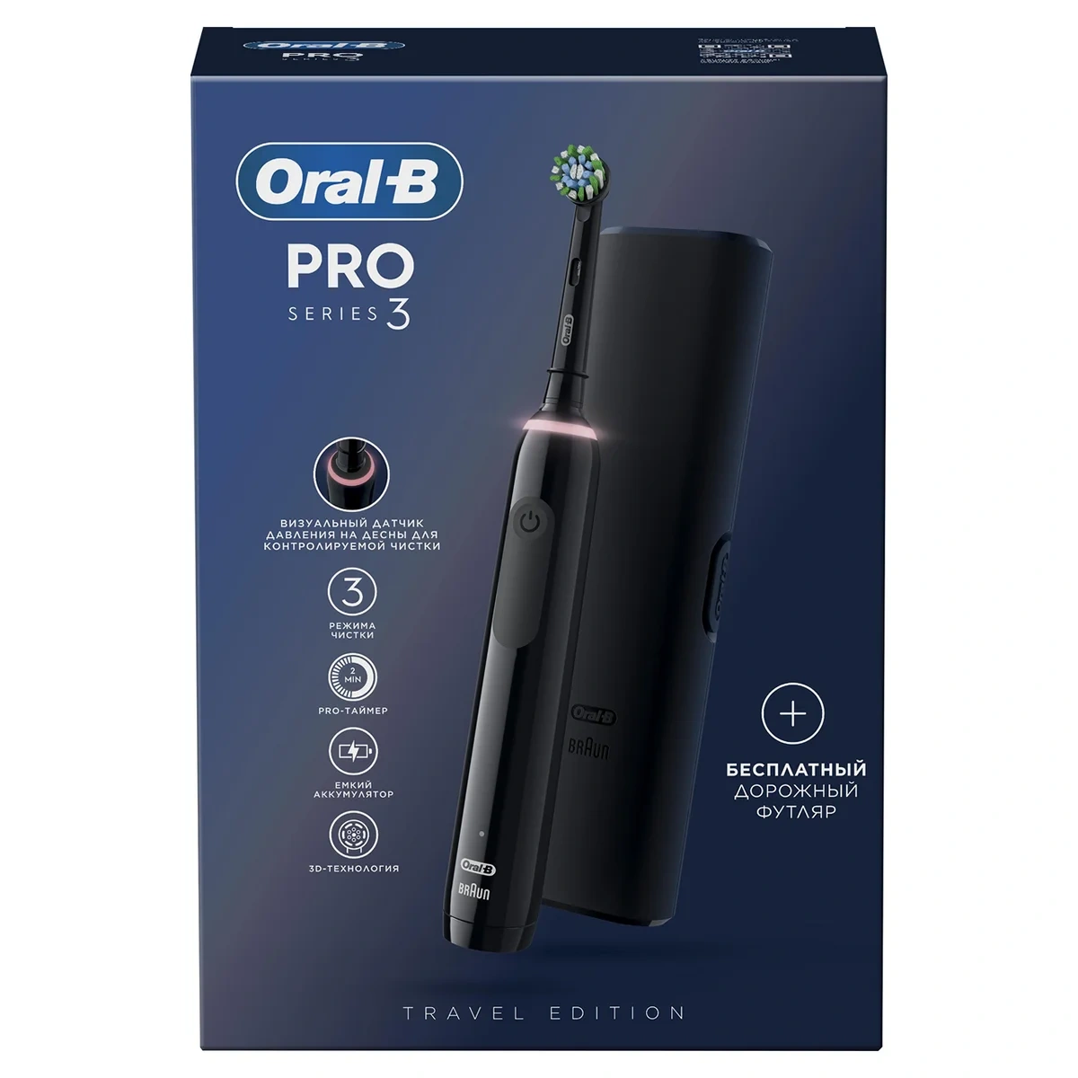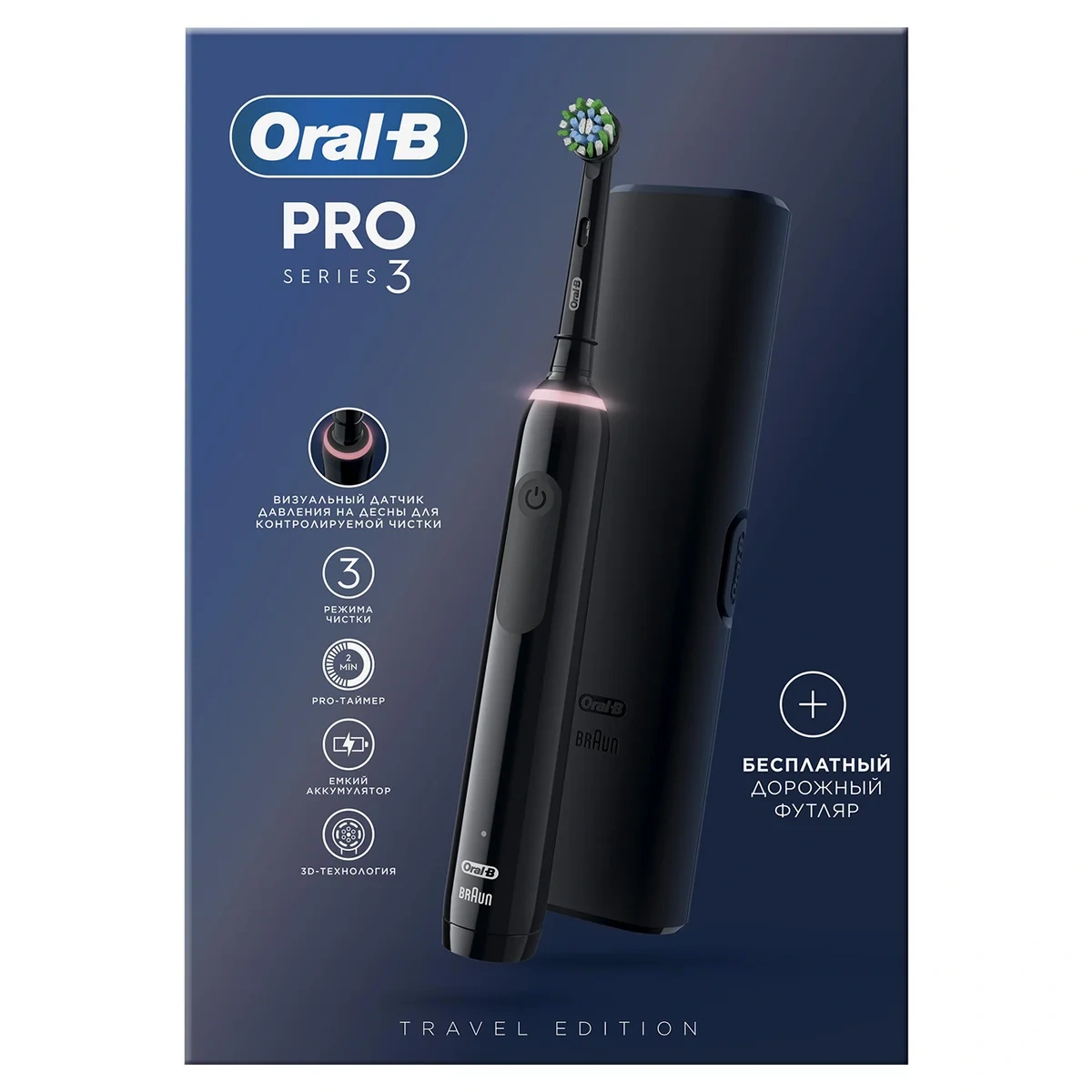 Электрическая зубная щетка создана для ежедневного ухода за полостью рта. Круглая насадка очищает зубы со всех сторон, перекрестные щетинки проникают в межзубные промежутки и эффективно удаляют зубной налет вдоль линии десен. Щетка бережно воздействует на эмаль, не повреждая ее. Электрическая зубная щетка Oral-B Pro 3 3500 выполнена в черном водонепроницаемом корпусе, поэтому хорошо защищена от попадания влаги.