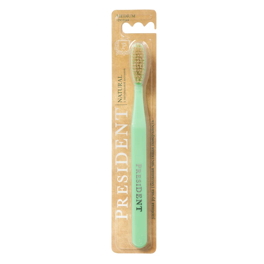 Зубная щетка President Natural с натуральной щетиной средней жесткости