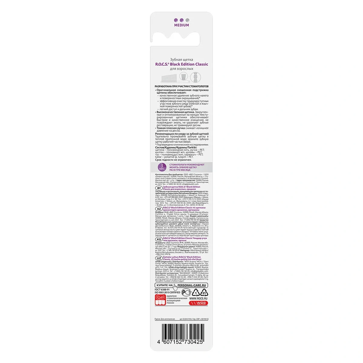 Зубная щетка R.O.C.S. Black edition средняя жесткость