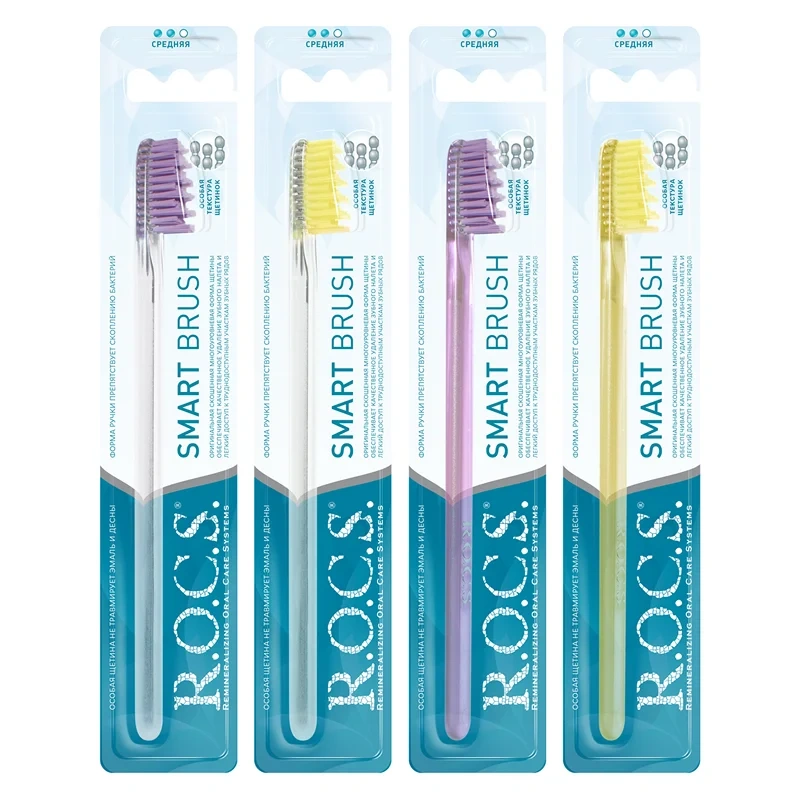 Уникальная форма головки зубной щетки Rocs - скошенная к концу головки щётки подстрижка щетины - повышает качество чистки поверхности зубов и позволяет с легкостью проникать в труднодоступные участки зубного ряда, а так же качественно очищать пространство между зубами, не повреждая десны. Тонкая плоская прозрачная ручка обеспечивает необычайную маневренность на всех участках зубного ряда. Нестандартная разноуровневая пострижка щетины облегчает проникновение к труднодоступным участкам полости рта и повышает качество очищения дальних зубов, небной и язычной поверхностей зубов.