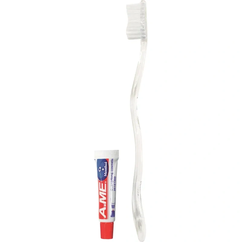 Предназначен для гигиенического ухода за полостью рта в поездках, гостиницах и других местах временного пребывания. В комплект входят зубная щётка длиной 18 см и зубная паста объёмом 6 г в тюбике. Все элементы упакованы в индивидуальный флоупак из полиэтилена, обеспечивающий защиту от внешних загрязнений.